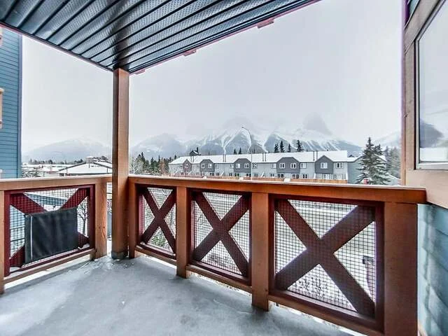 This furnished and spacious unit offers panoramic mountain views from Three Sisters to Rundle Range in its 893sqft floorplan. Located in highly sought after Canmore Crossing, you are steps away from downtown shops, restaurants and trails and minutes walk from the river. Enjoy sunsets on the deck or cozying up in front of the fireplace. You'll love the open concept layout that maximizes the use of the space and makes entertaining a breeze. Virtually turn-key, your mountain retreat can be lived in as a primary residence, leased long term or rented Airbnb.Unwind in one of the rooftop outdoor hottubs or the top floor indoor hottub in the complex and exercise in one of several fitness rooms. If you are looking for the best combination of location, views and living space then this unit should be on your short list. Browse the virtual tour at https://youriguide.com/206_1140_railway_ave_canmore_ab and then contact your Associate to book your private viewing.